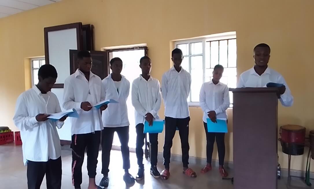 The defense started with holy mass at 11:30 am, by Rev. Fr. Chidiebere Ani at VTTC's new classroom hall. Fr. Chidiebere in his homily encouraged the trainees and the entire VTTC family to be dedicated to their duties referencing the gospel of the day. He particularly encouraged the trainees “always be serious with their training and sincere in rendering their services to the public because their attitude matters a lot.